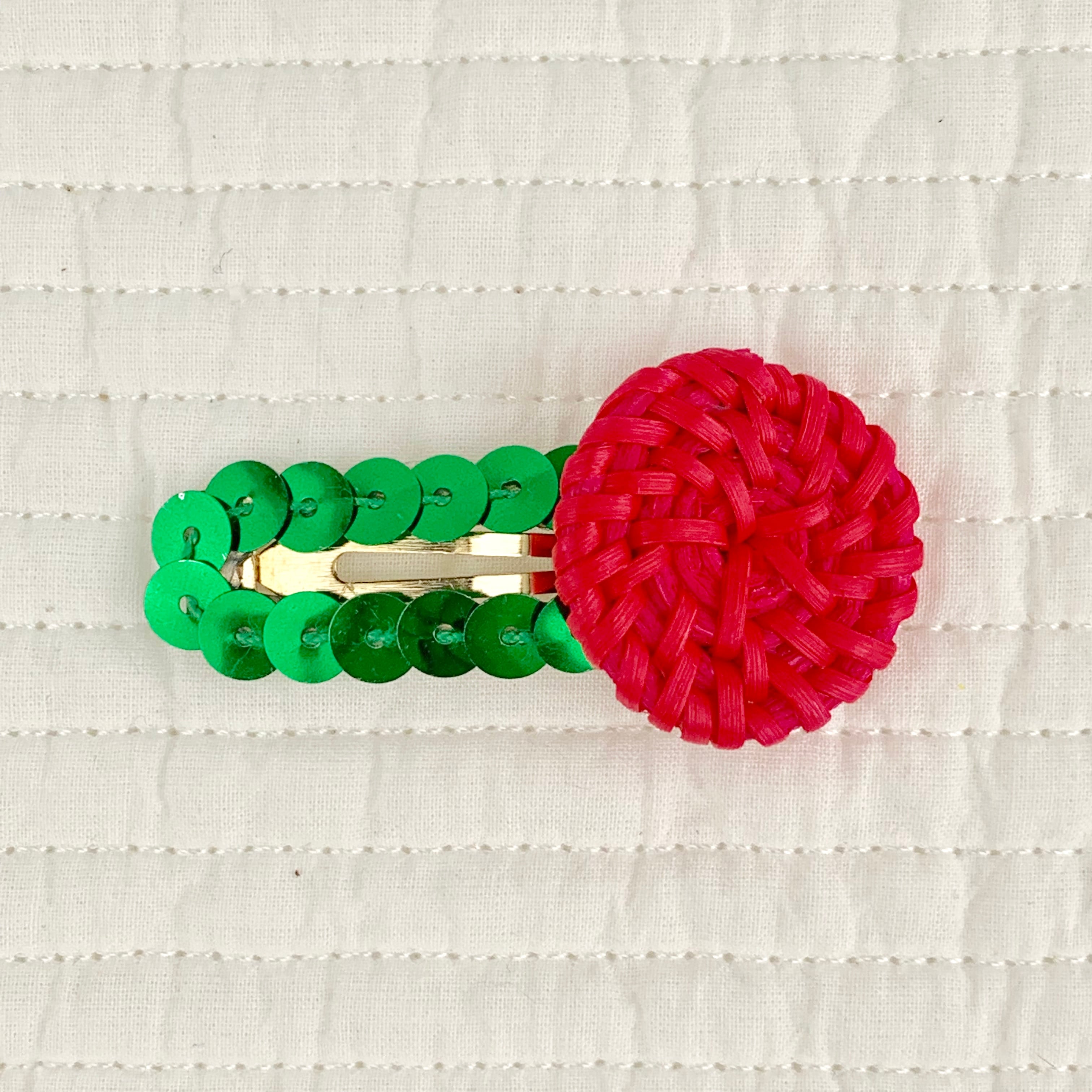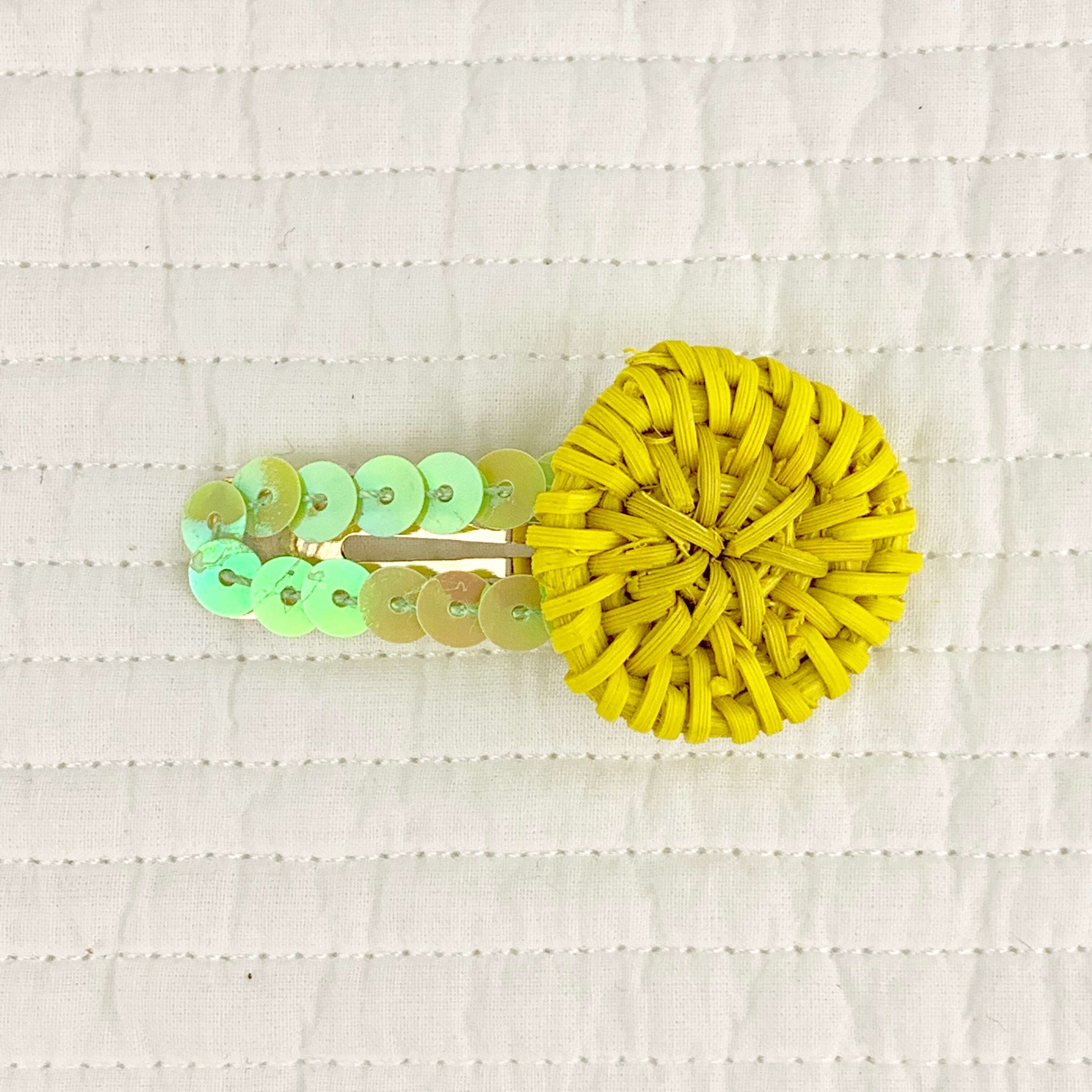 自然素材とスパンコールの組み合わせが新鮮なヘアピン