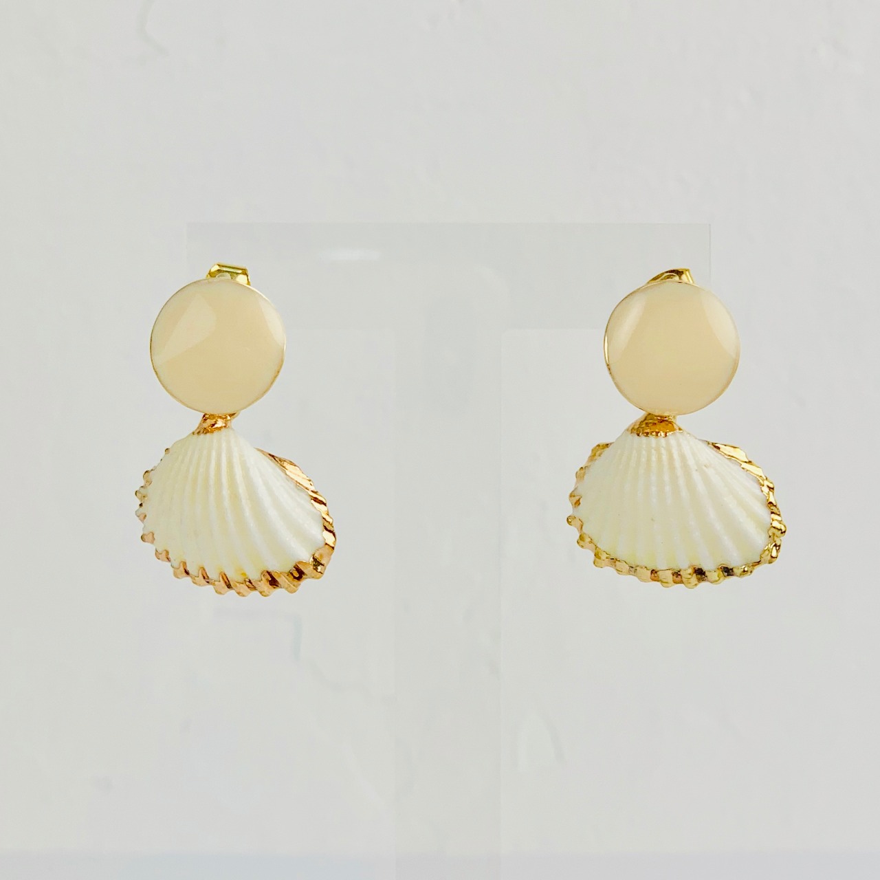 ほんのりピンクがかった樹脂とゴールドのシェルがガーリーなピアス □素材 合金 □サイズ 3×2