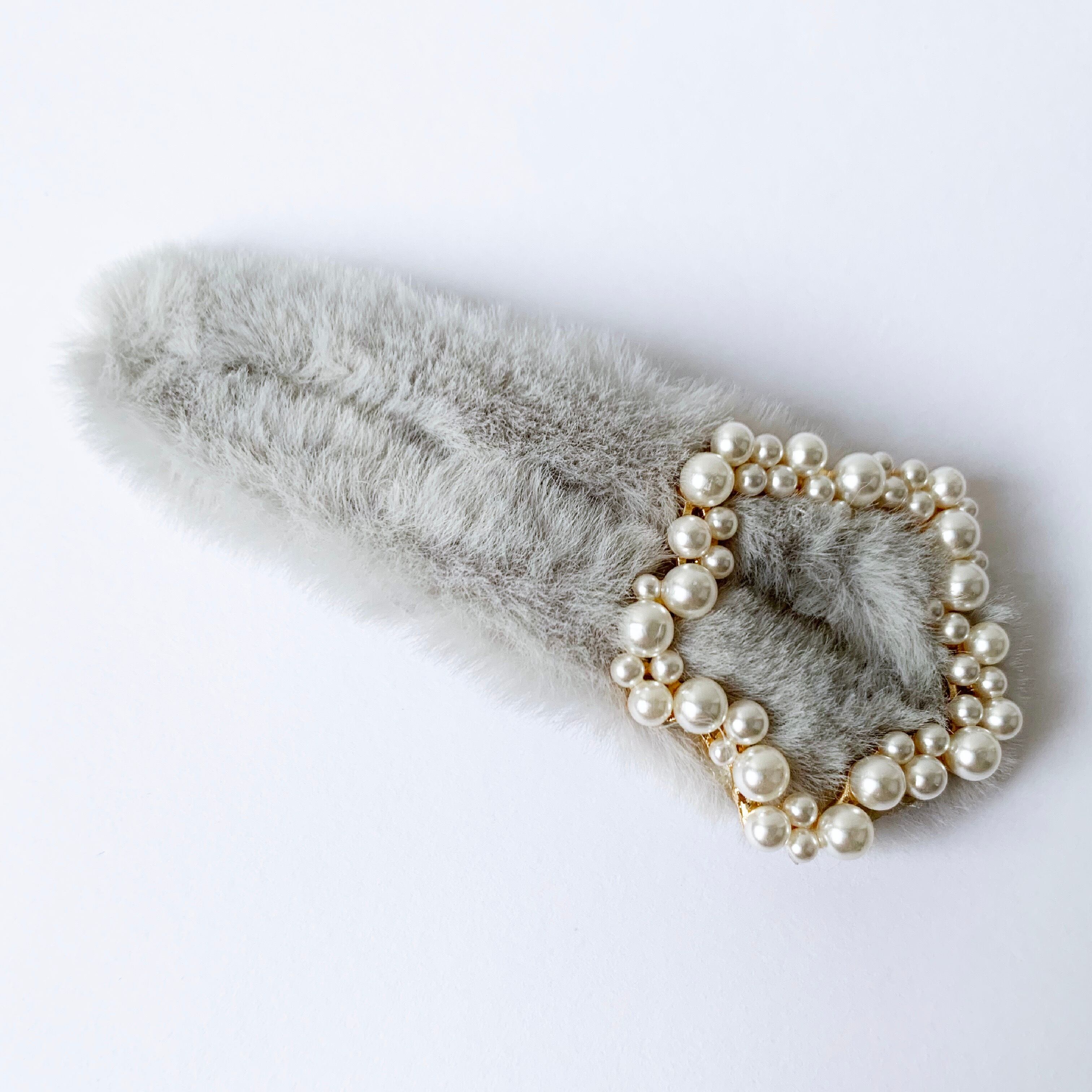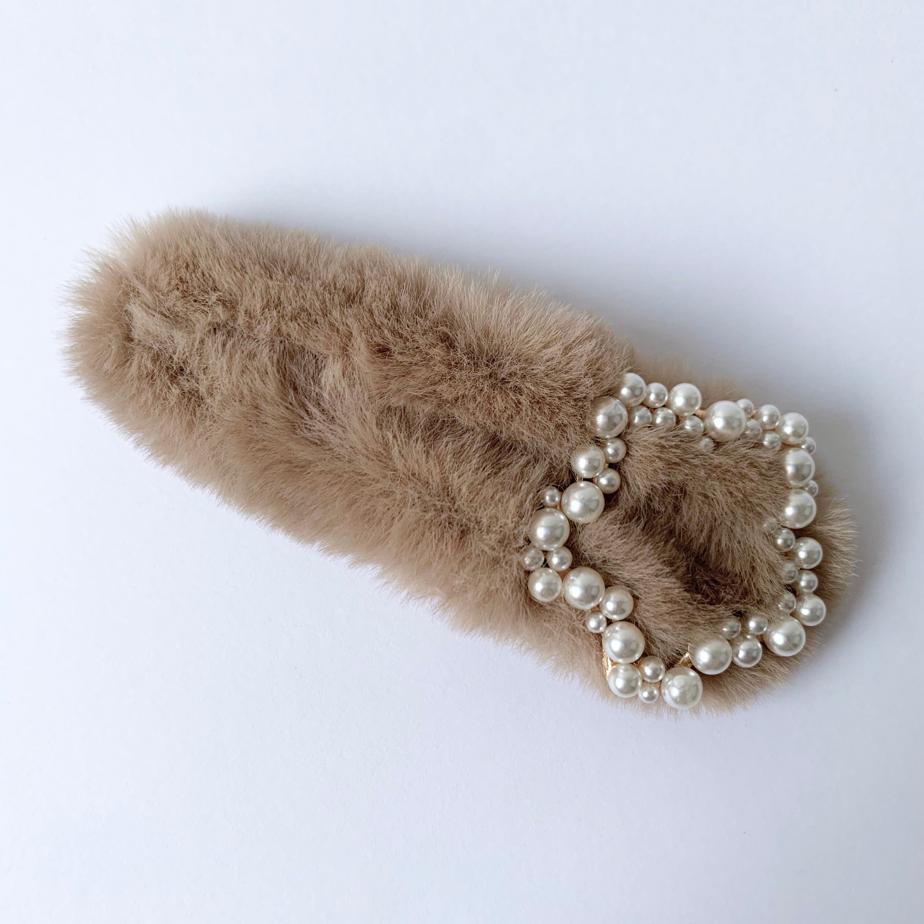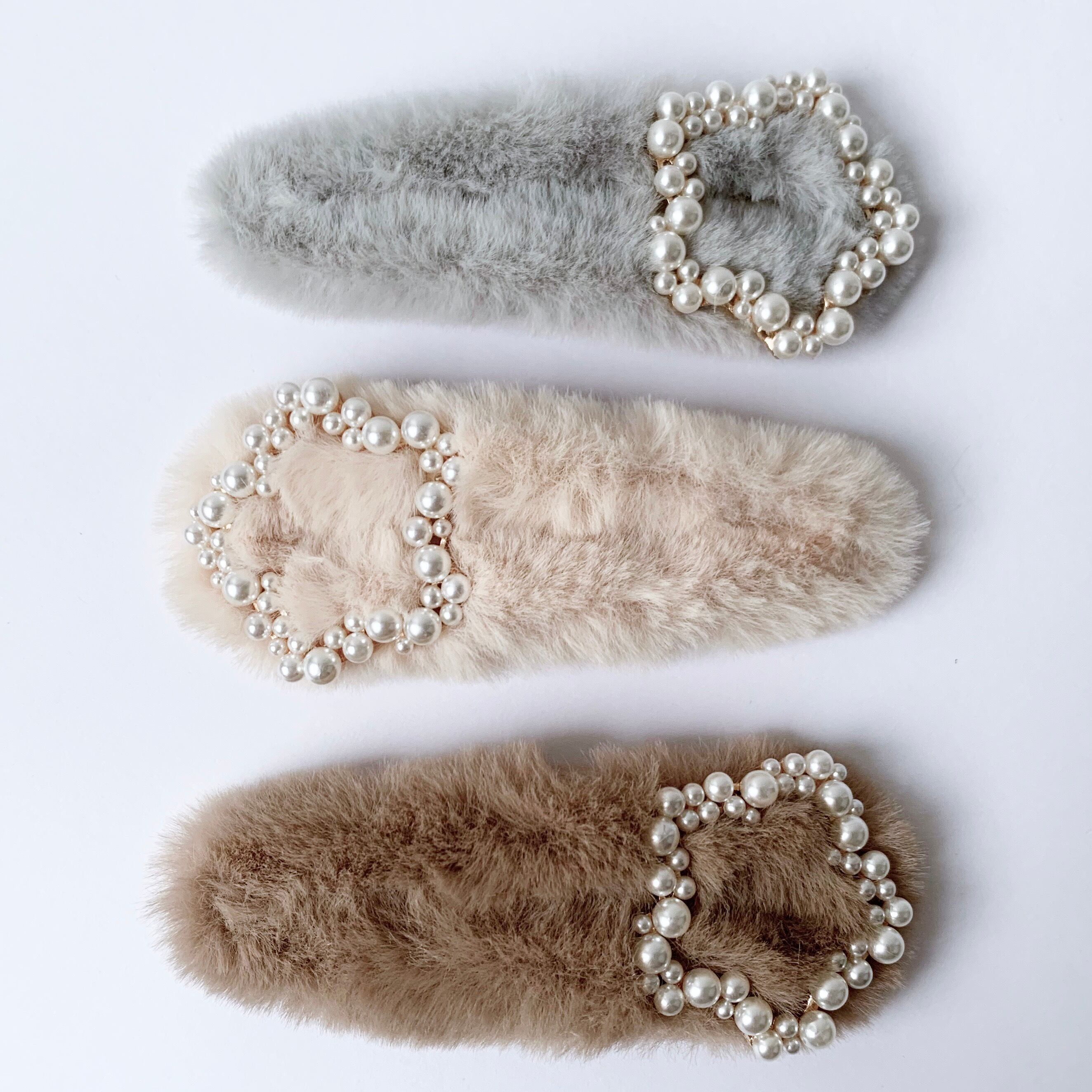 ビジューとファーの組み合わせがとっても可愛いヘアピン♡