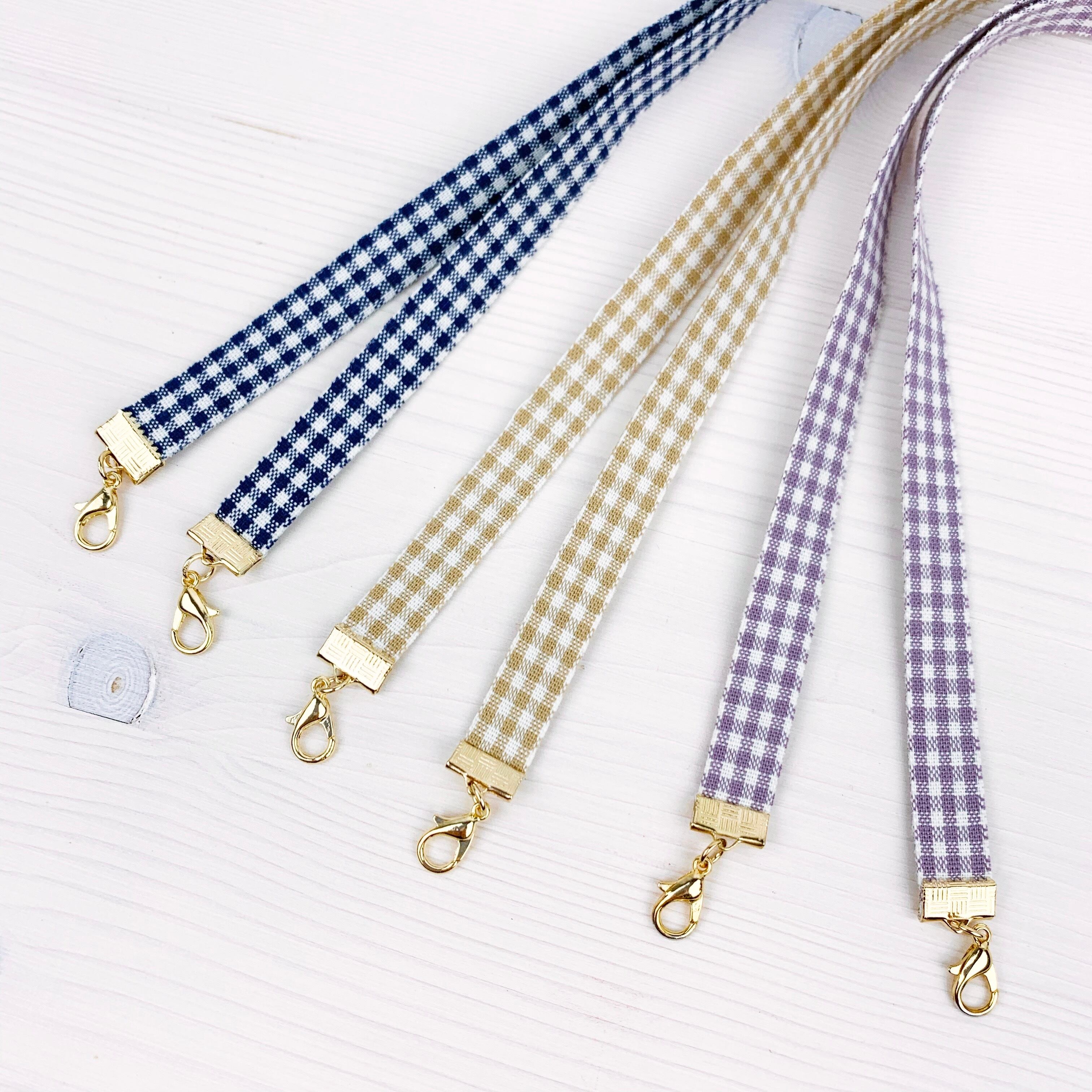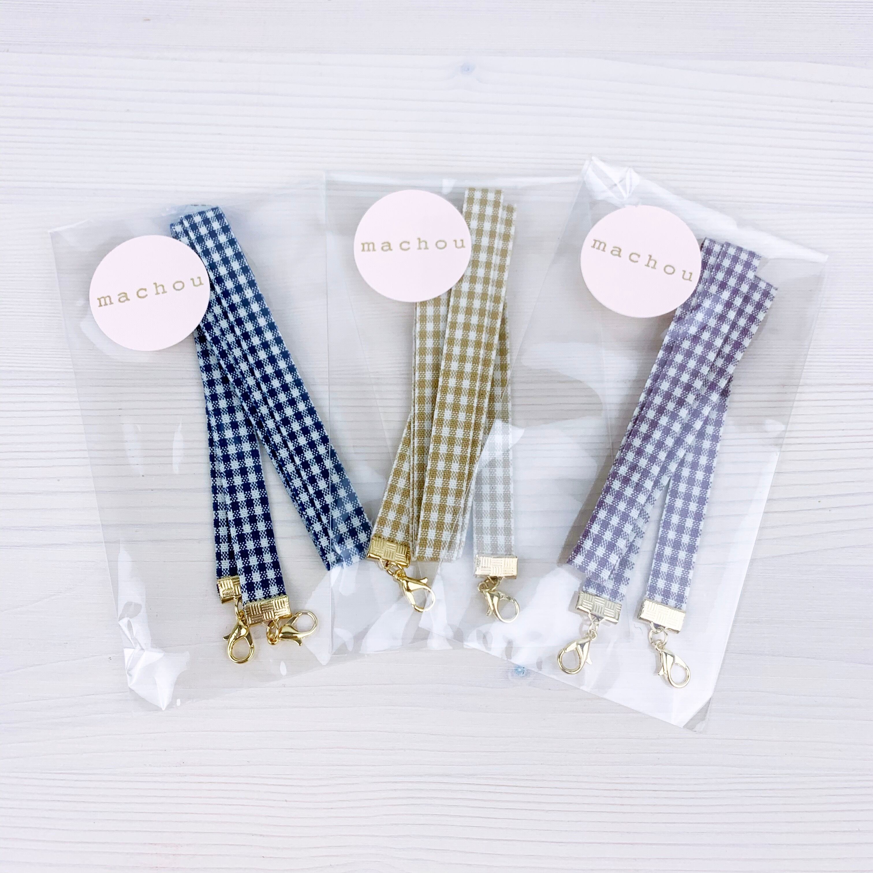 チェックのコットン生地リボンを使用し約3.5gと軽量ながらディテールにもこだわったデザイン。