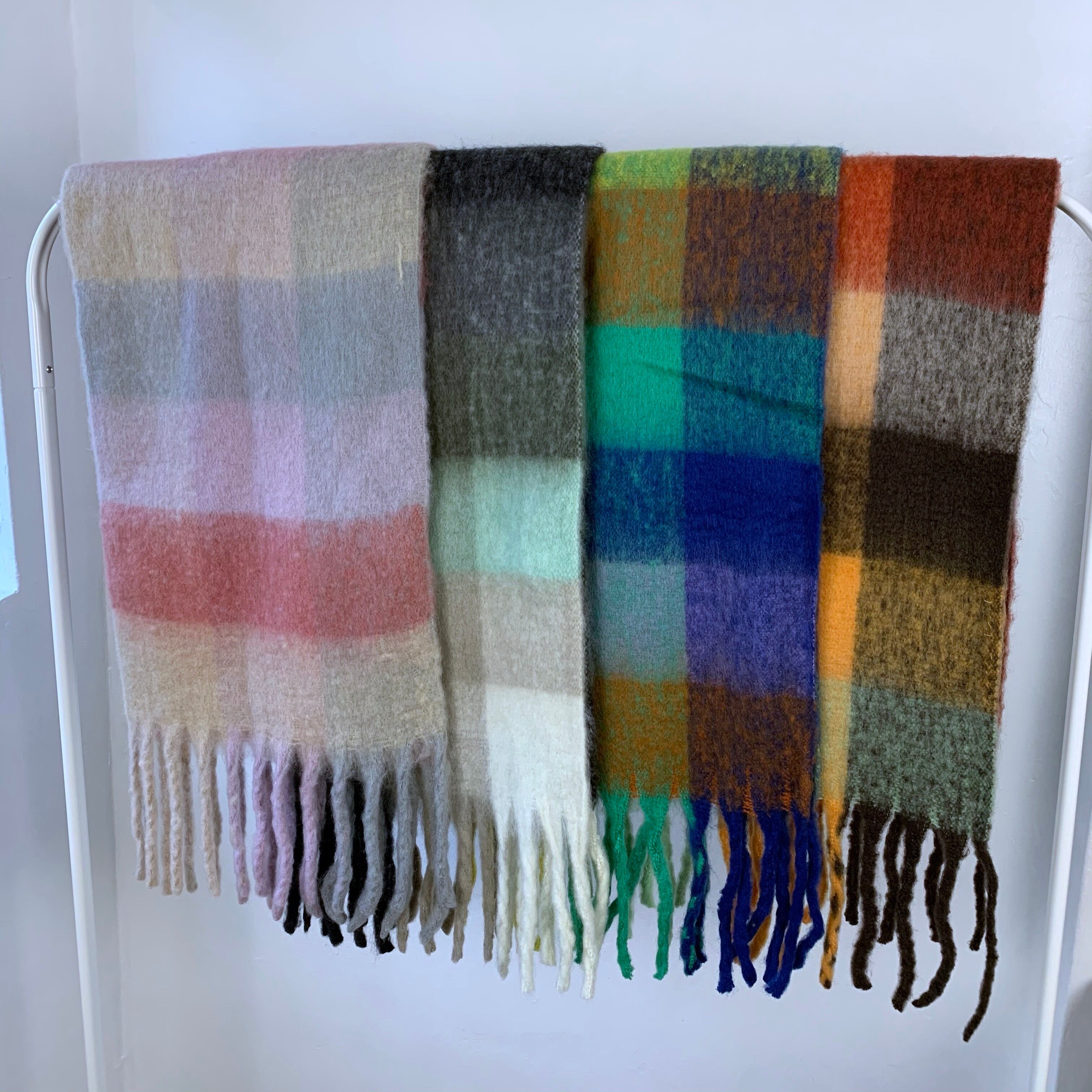 ブロックチェックの配色が可愛い韓国デザインのマフラー♡