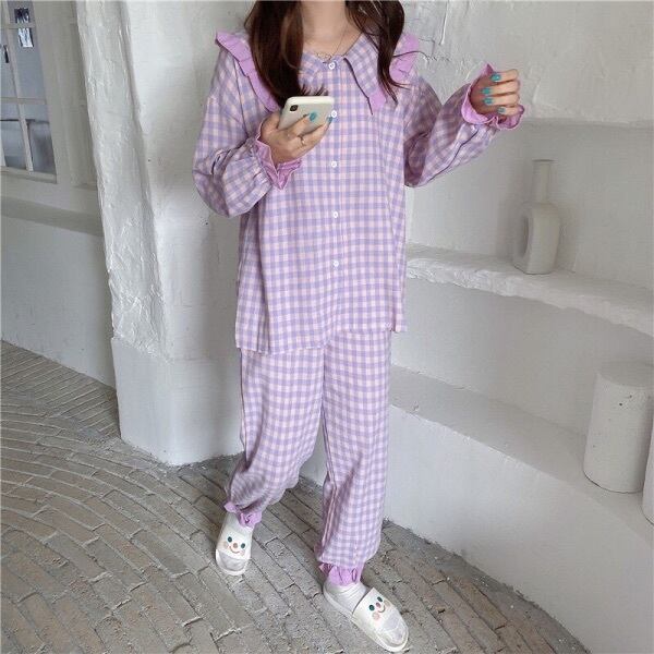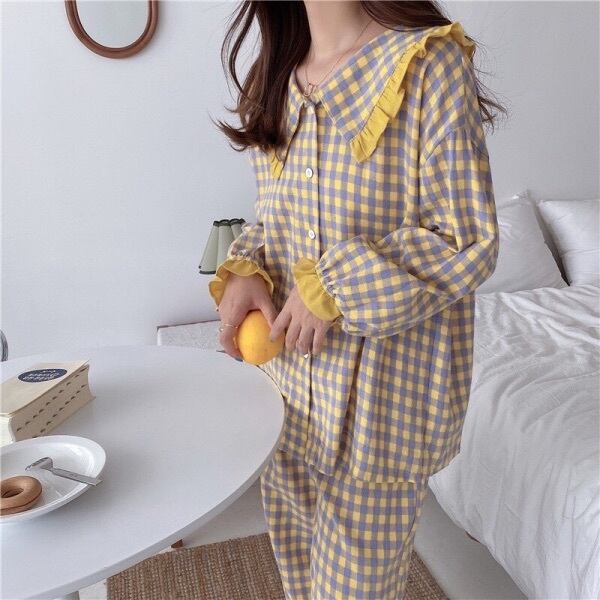 ビッグカラーとフリルがポイントのガーリーなパジャマ