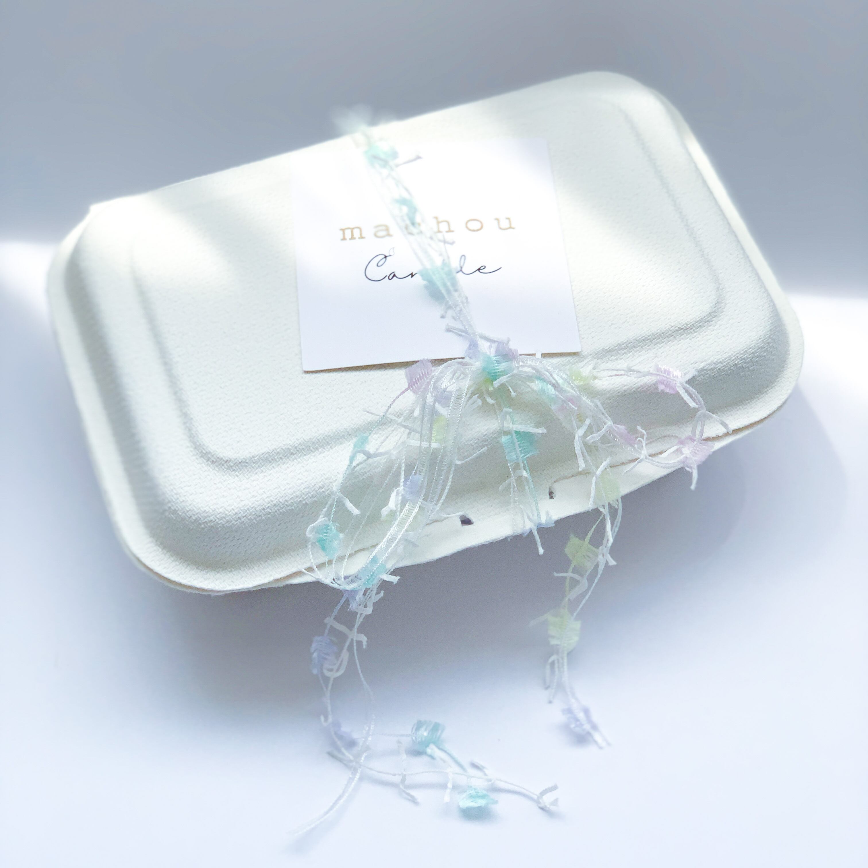 大豆(ソイ)を原料としたワックスを使用した自然由来のキャンドルです。(一部同じく自然由来のビーズワックス(蜜蝋)を配合しています。)