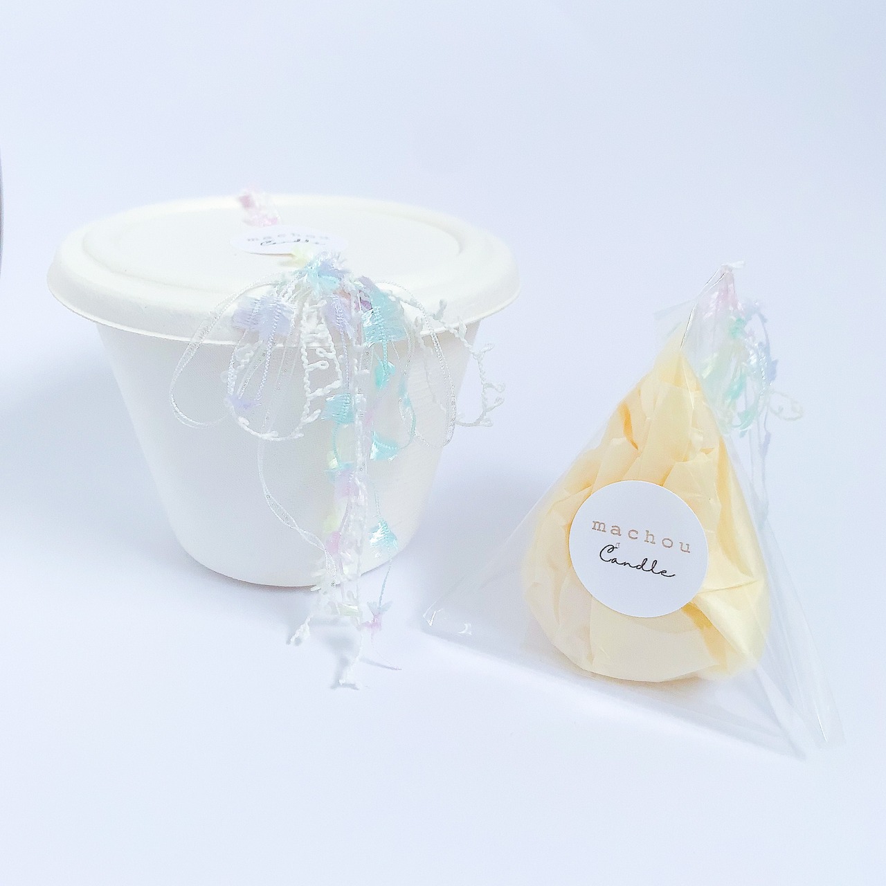 大豆(ソイ)を原料としたワックスを使用した自然由来のキャンドルです。(一部同じく自然由来のビーズワックス(蜜蝋)を配合しています。)